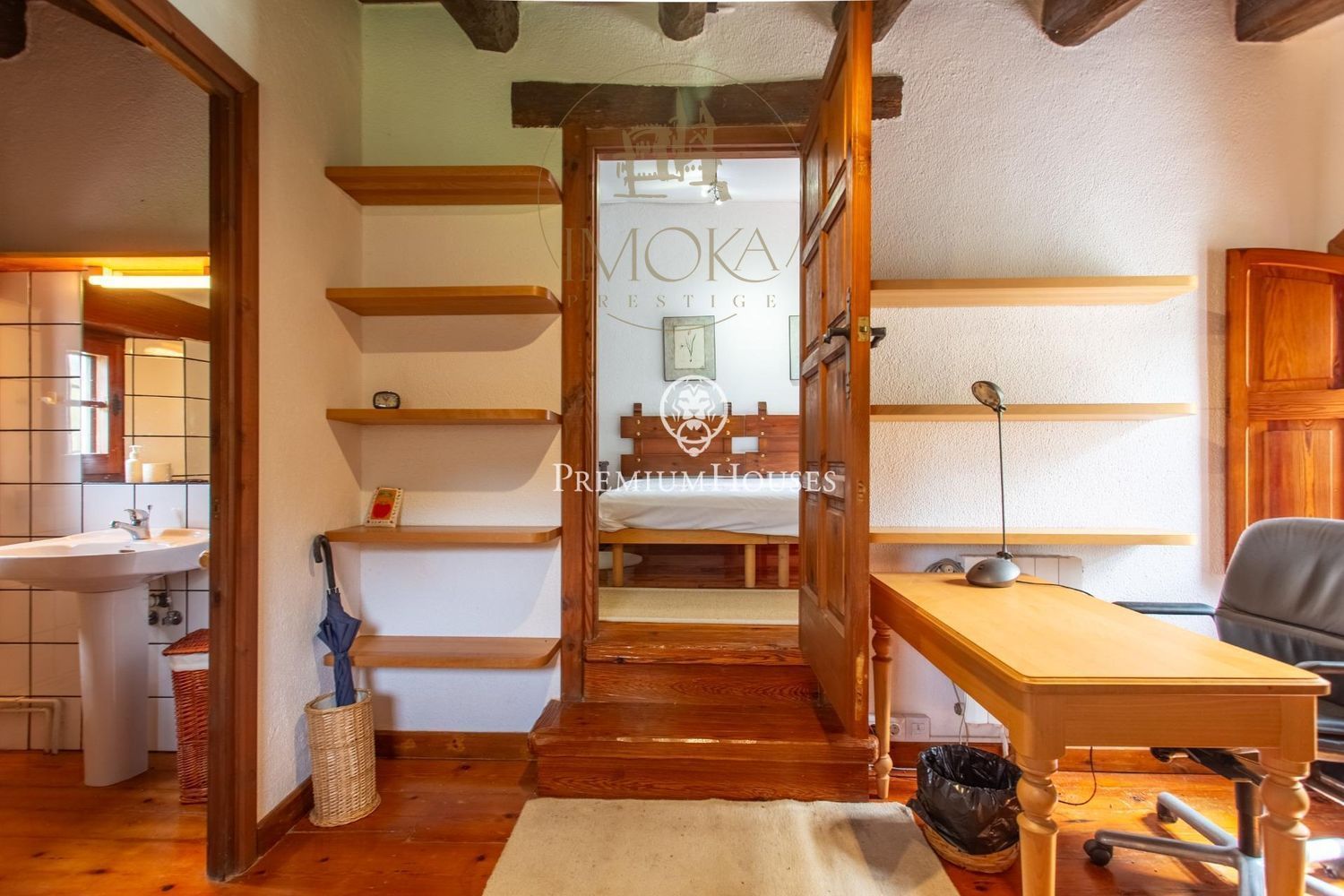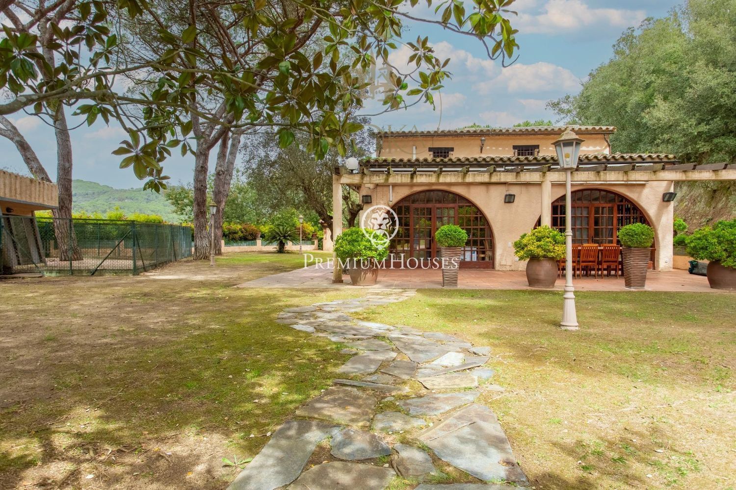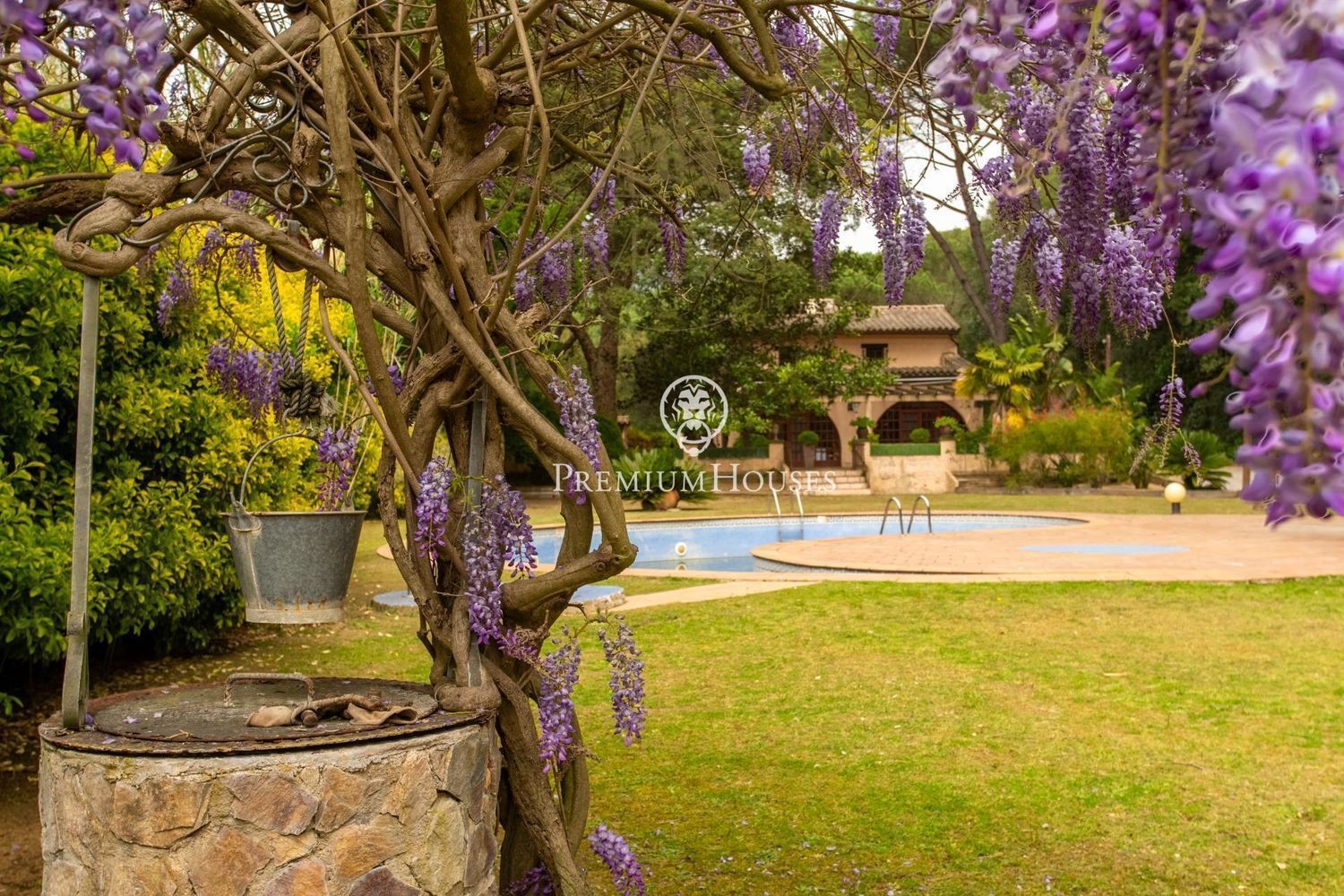 Masía Can Jana (447 m2): La joya principal. Una pieza del S. XVIII en perfecto estado. Destaca su gran salón-comedor con chimenea, cocina con despensa, despacho, zona de vestidor y porches cubiertos que conectan con un jardín impecable.