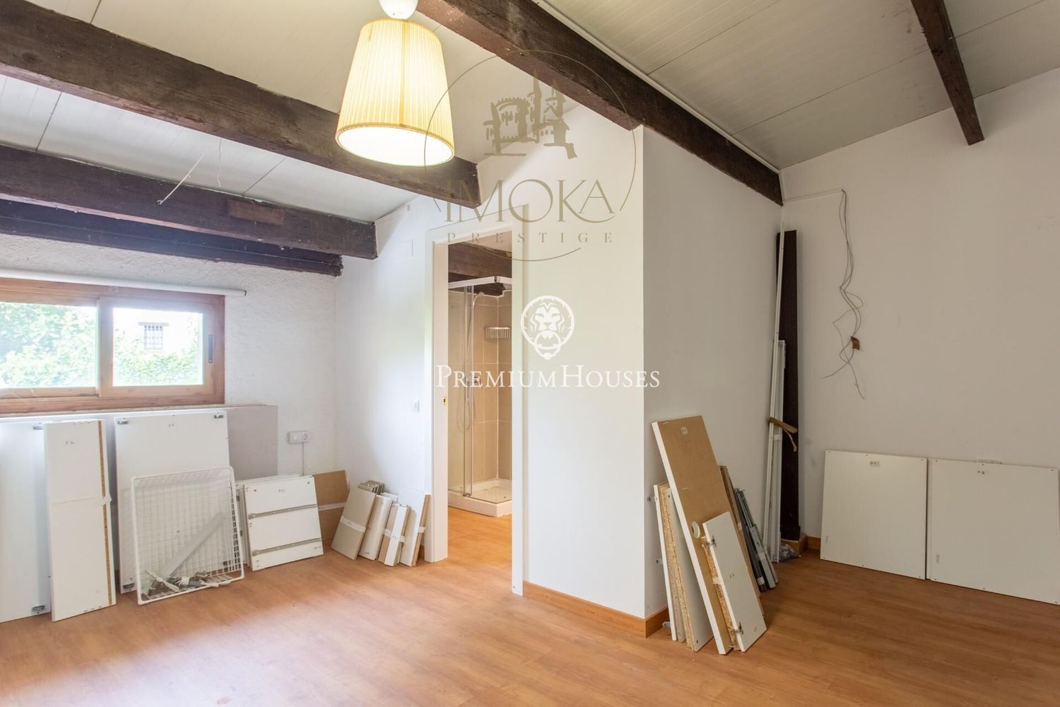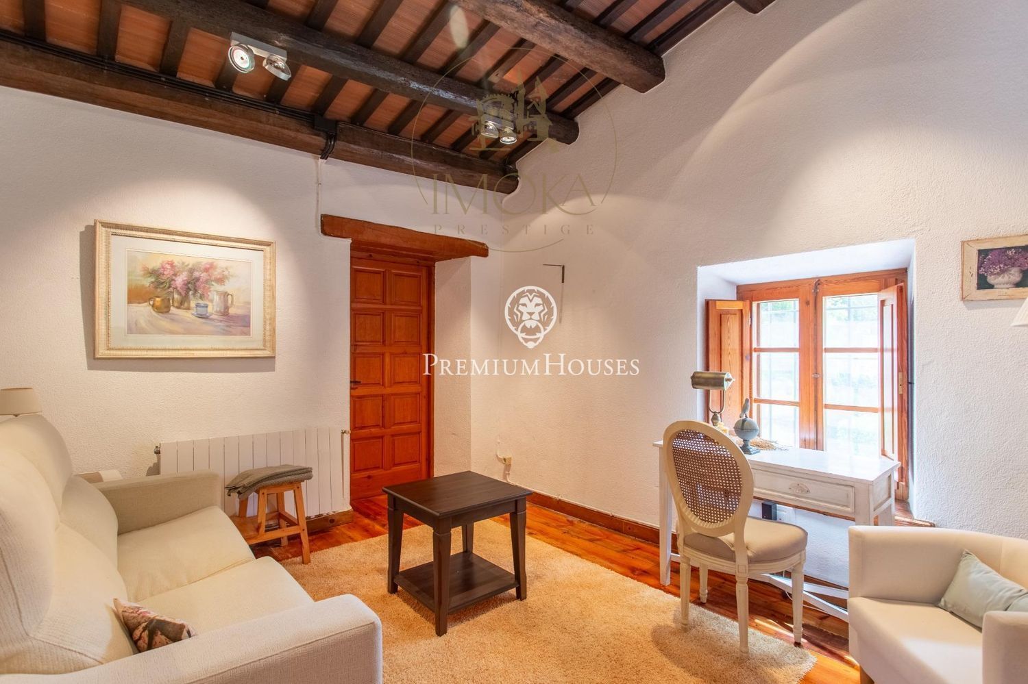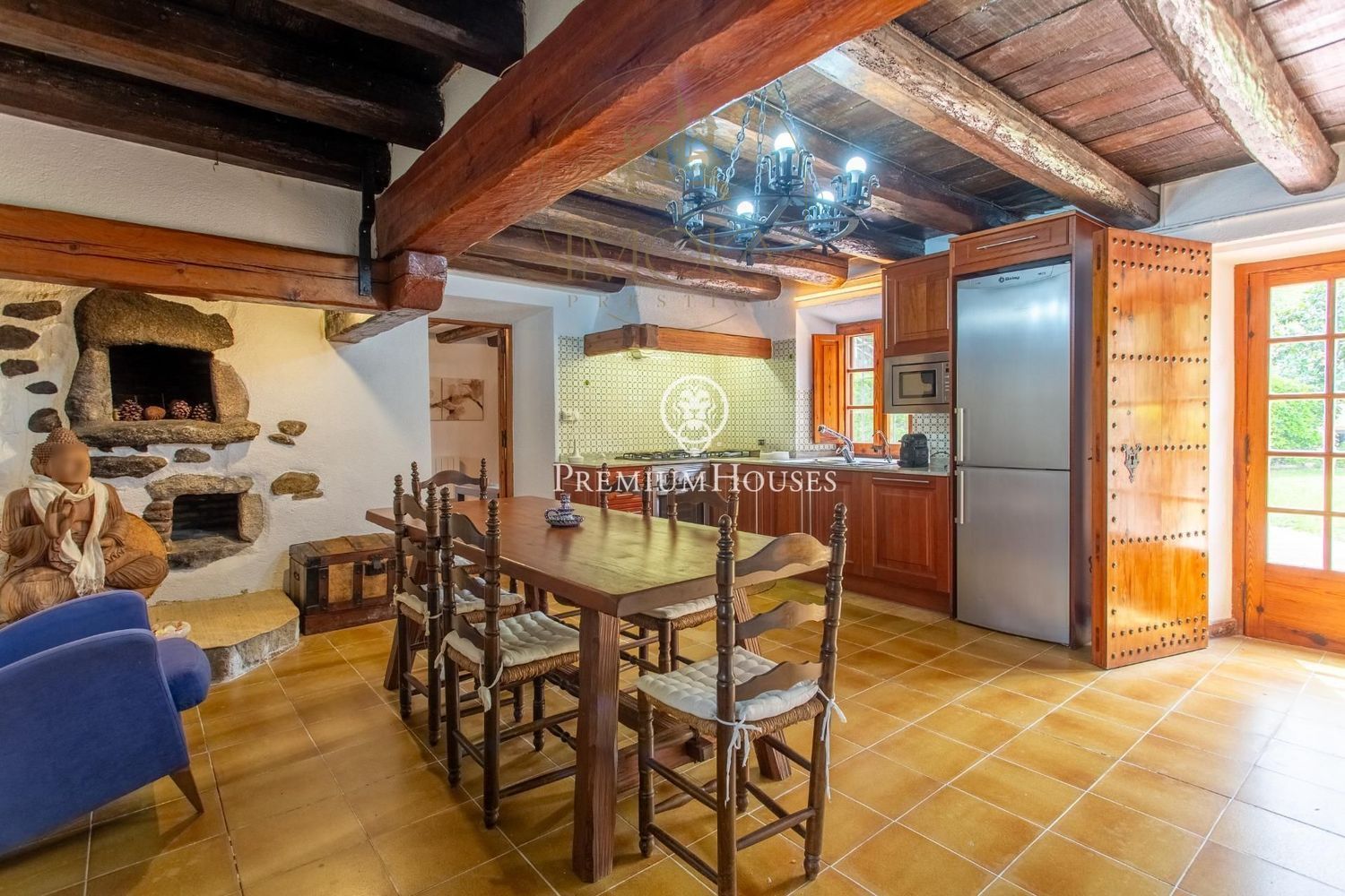 Masía Can Jana (447 m2): La joya principal. Una pieza del S. XVIII en perfecto estado. Destaca su gran salón-comedor con chimenea, cocina con despensa, despacho, zona de vestidor y porches cubiertos que conectan con un jardín impecable.